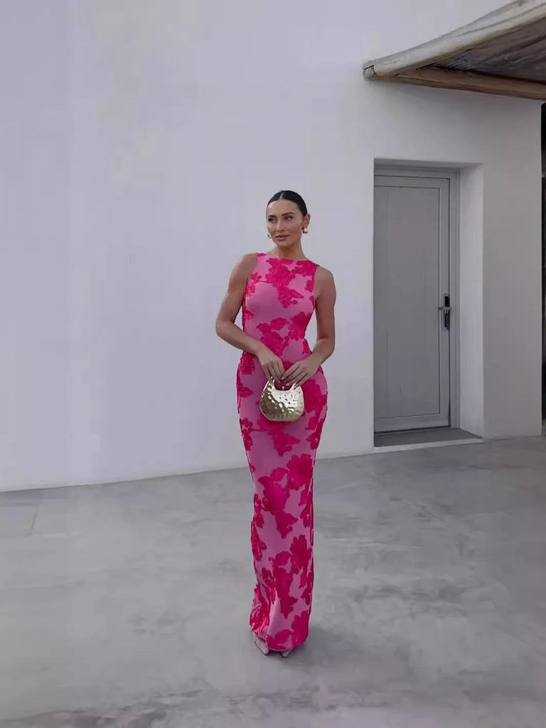 Sleeveless 3D Floral Embroidery Mesh Maxi Dress Sleeveless 3D Floral Embroidery Mesh Maxi Dress